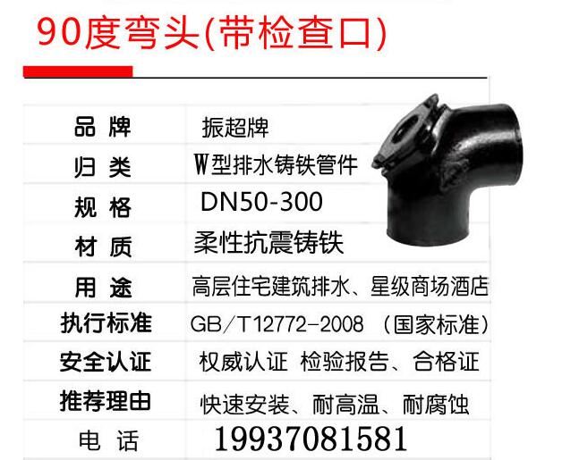 振超牌W型鑄鐵排水管件,柔性抗震鑄鐵,快速安裝,耐高溫,耐腐蝕;用于高層住宅建筑排水、星際商場酒店。
