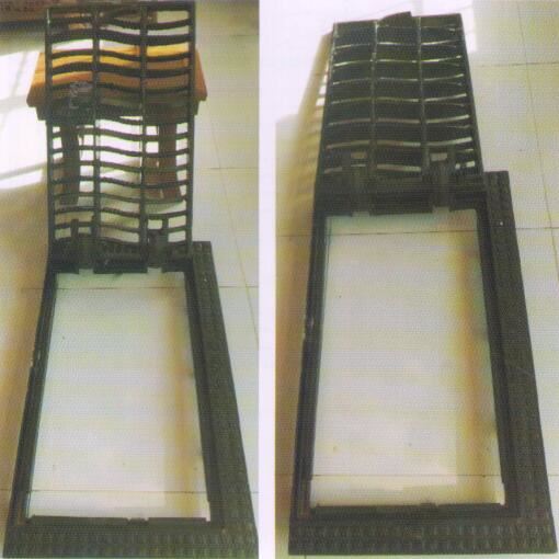 套篦施工簡單、重量輕、承載好、抗沖擊、寧彎勿折、排水量大、美觀耐用,防腐。采用鉸鏈聯結或者采用鉤聯接等方式,便于開啟,并具防盜功能。