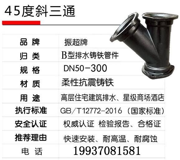 鑄鐵排水管45度斜三通