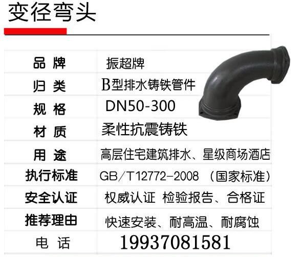 振超牌B型鑄鐵排水管件,柔性抗震鑄鐵,快速安裝,耐高溫,耐腐蝕;用于高層住宅建筑排水、星際商場酒店。