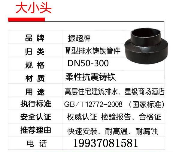 振超牌W型鑄鐵排水管件,柔性抗震鑄鐵,快速安裝,耐高溫,耐腐蝕;用于高層住宅建筑排水、星際商場酒店。
