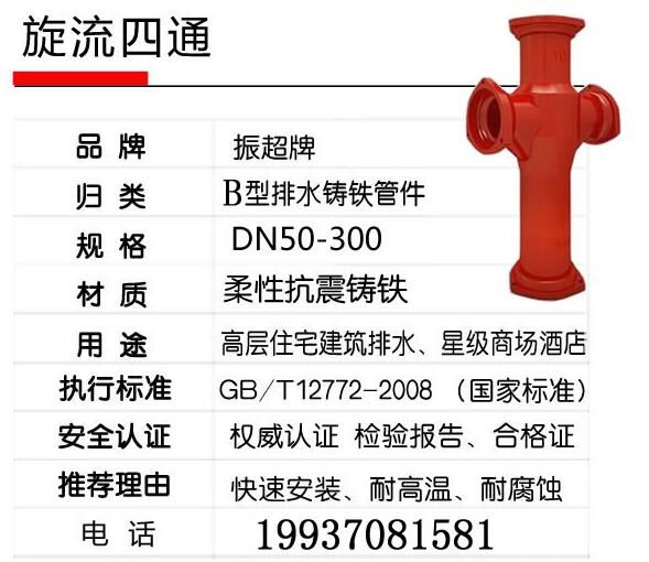 振超牌B型鑄鐵排水管件,柔性抗震鑄鐵,快速安裝,耐高溫,耐腐蝕;用于高層住宅建筑排水、星際商場(chǎng)酒店。