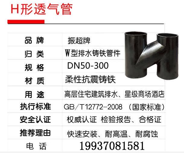 振超牌W型鑄鐵排水管件,柔性抗震鑄鐵,快速安裝,耐高溫,耐腐蝕;用于高層住宅建筑排水、星際商場酒店。