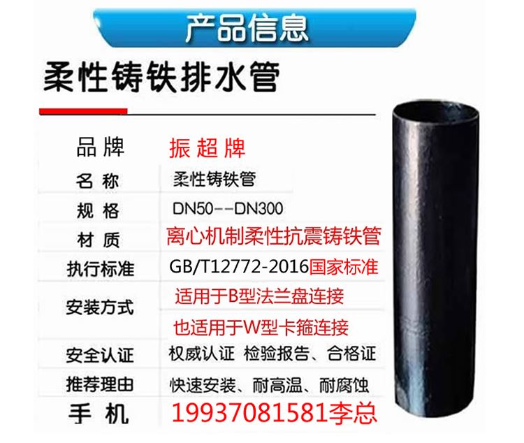 專業(yè)生產(chǎn)銷售振超牌W型B型柔性鑄鐵排水管廠家