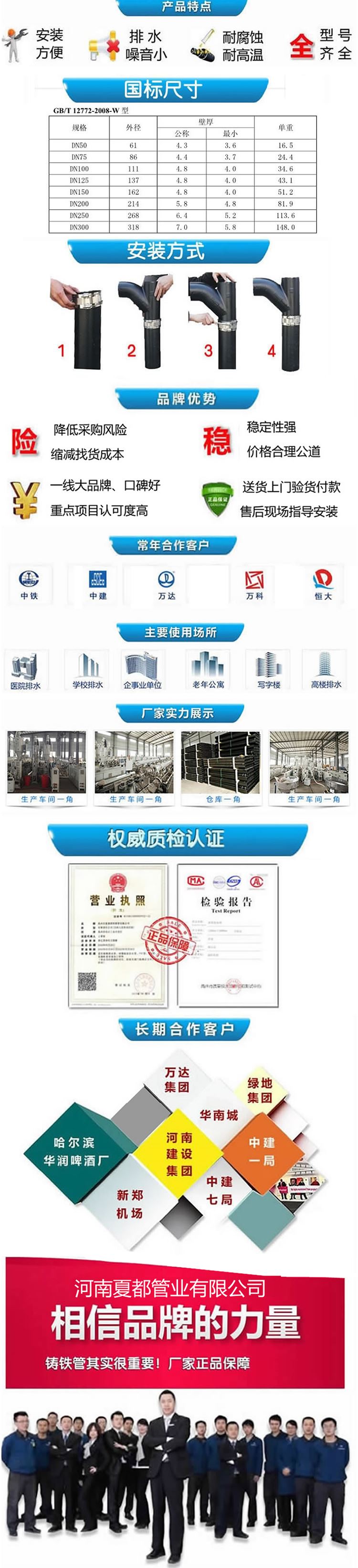 W型柔性鑄鐵排水管,B型柔性鑄鐵下水管,河南柔性抗震鑄鐵排水管廠家,柔性鑄鐵下水管廠家