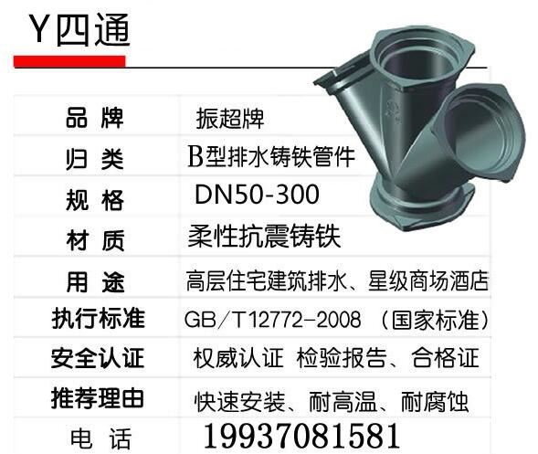 B型鑄鐵排水管件Y四通振超牌