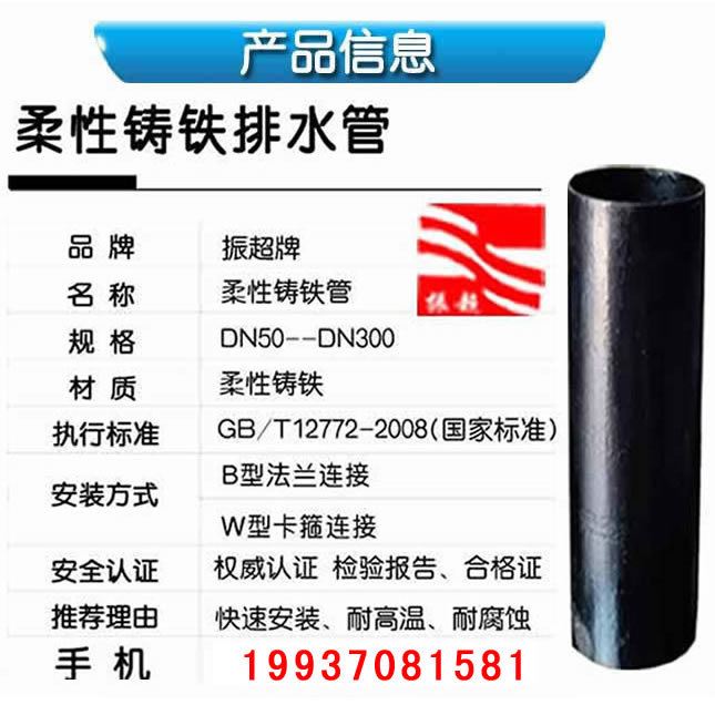 振超W型卡箍連接鑄鐵下水管件 250離心機(jī)制柔性抗震鑄鐵排水管道,快速安裝,耐高溫,耐腐蝕,排水噪音小。